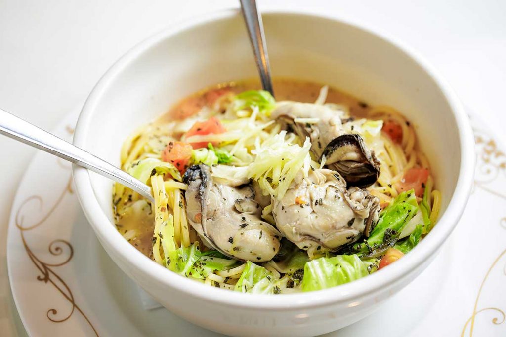 趣向を凝らした月替りのおすすめスパも人気なんです。12月は「宮城県産牡蠣のバジル&生姜スープスパ」が登場
