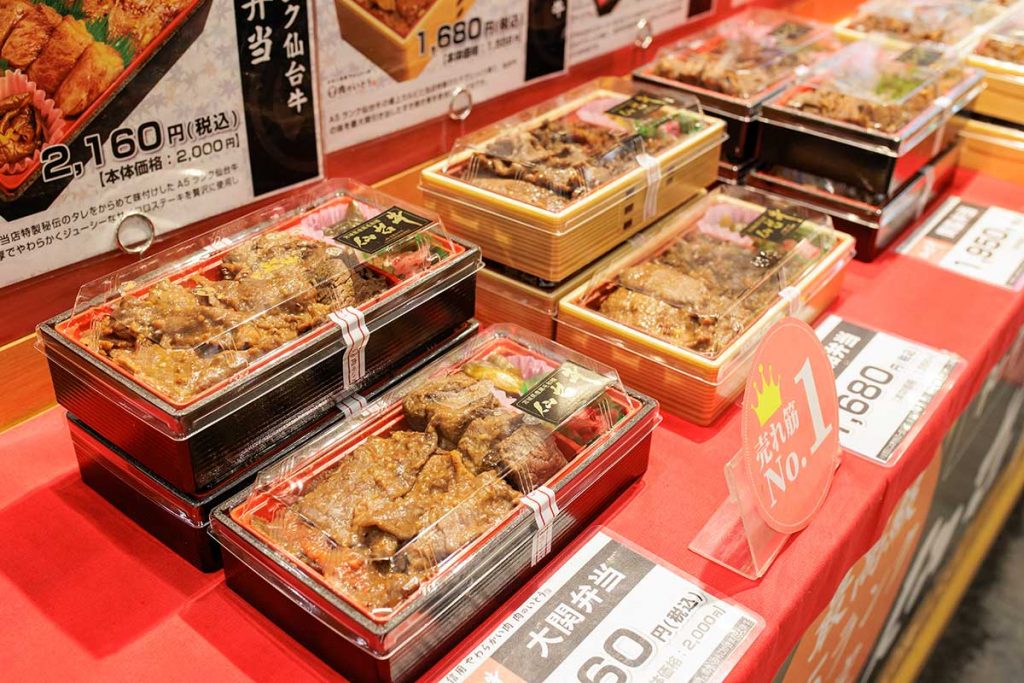 弁当やお総菜の販売も見逃せません!弁当の人気はA5ランク仙台牛の極上カルビとジューシーなサイコロステーキを盛り込んだ「大関弁当」(2,160円)