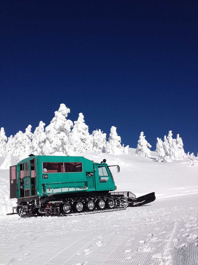 宮城蔵王では暖房完備の雪上車「ワイルドモンスター号」に乗って樹氷原まで行き、間近でじっくり樹氷を観ることができます。