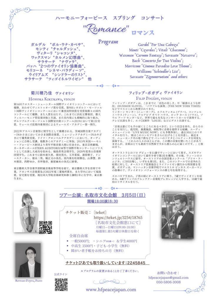 「ハーモニー・フォー・ピース スプリングコンサート”ROMANCE”ロマンス」が