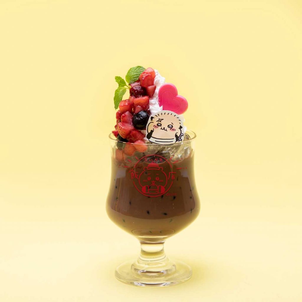 「くりまんじゅうの休肝日ドリンク」(770円)。甘さ控えめのジンジャエールをぐいっとどうぞ。グラスはグッズショップ・ちいかわマーケットでも販売