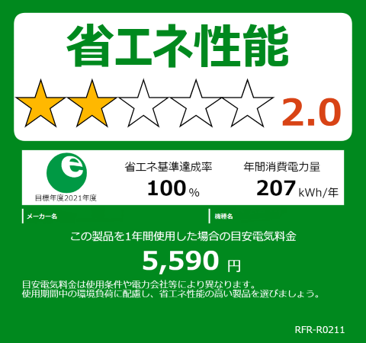 省エネ性能の目安になるのが「統一省エネラベル」の“星の数”。星の数が多いほど省エネ性能が優れています。購入する際は必ずチェックしましょう。