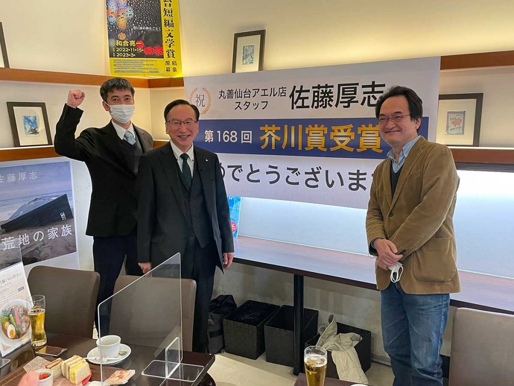 待ち会では『丸善 仙台アエル店』の店長や、恩師、佐藤厚志さんが大賞を受賞した仙台短編文学賞の実行委員長などの、そうそうたるメンツが集結。