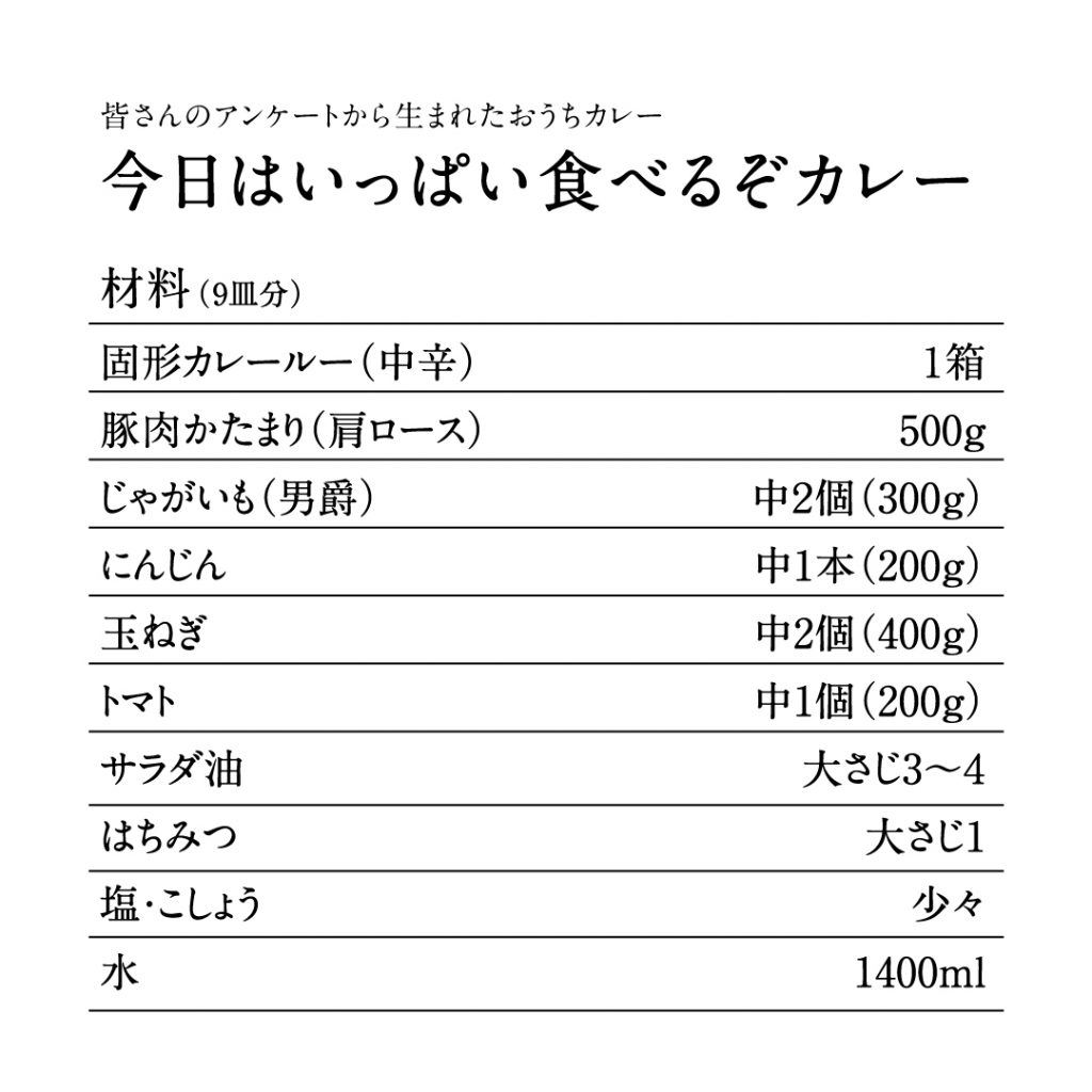そんなみんなの「おうちカレー」へのこだわりをアンケート集計し、
