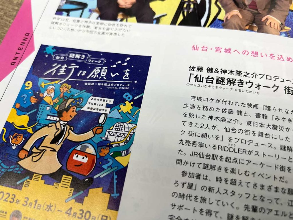 さらに佐藤健さん&神木隆之介さんプロデュースの「仙台謎解きウォーク 街に願いを」も紹介しています