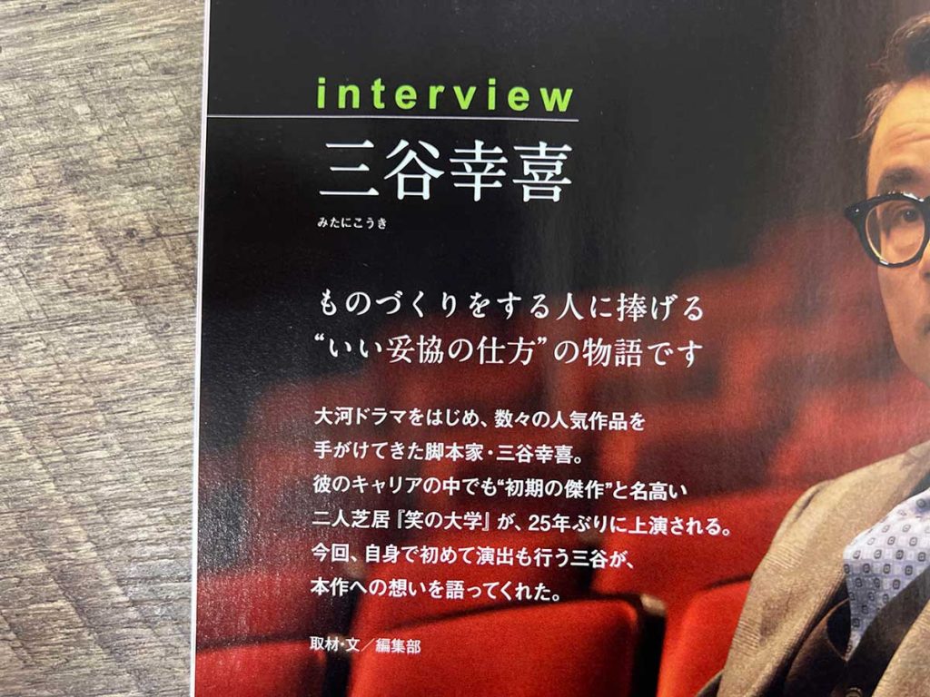 脚本家・三谷幸喜さんのインタビューは読みごたえがありますよ!舞台『笑の大学』についてのお話をお聞きしています