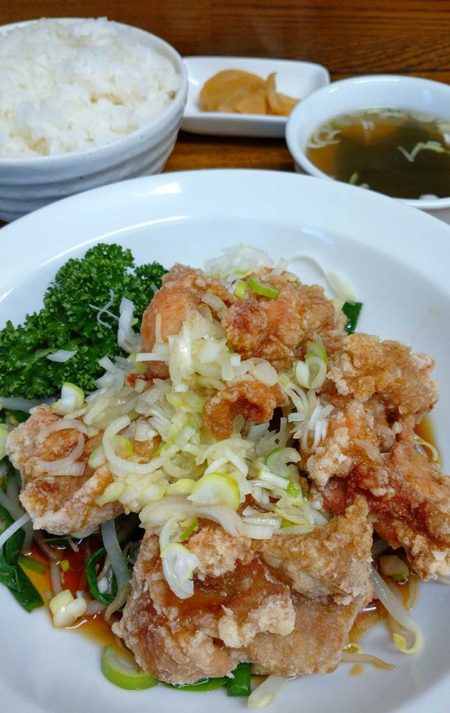 人気メニューの「油淋鶏定食」は、大ぶりの唐揚げに、酸味の効いたしょうゆベースのタレがたっぷり。