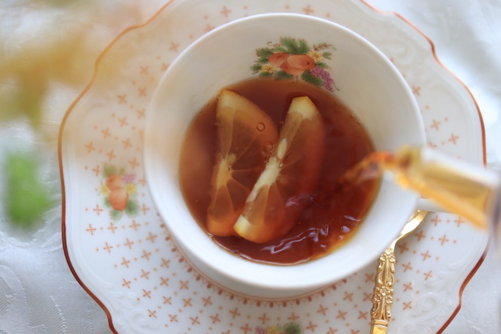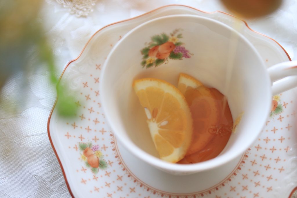 ・ハチミツは、紅茶専用のもの(セージ)を使っています。自宅にあるものでOK!ハチミツを入れることでレモンのクエン酸が和らぎます。