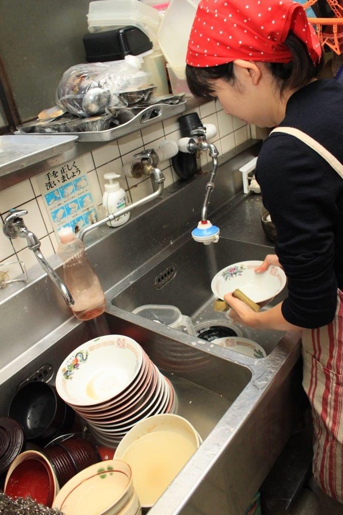 スタッフの皆さんが調理している間、マタギはせっせと皿洗い…