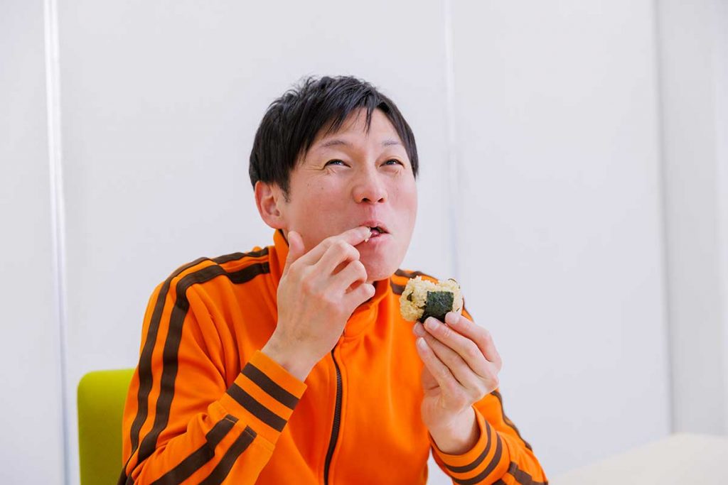 「通常の玄米だとボロッとしてしまって、こんなにうまくおにぎりにならないですよね」という編集部の質問に、「スチーム製法で高温の蒸気をあてているため、水を吸いやすくなり、炊きあがりもバラバラになりにくいんですよ」とお米マイスターの八木橋さん。「このおにぎり2~3個と汁物があれば最高の昼めしだ」(秀作)