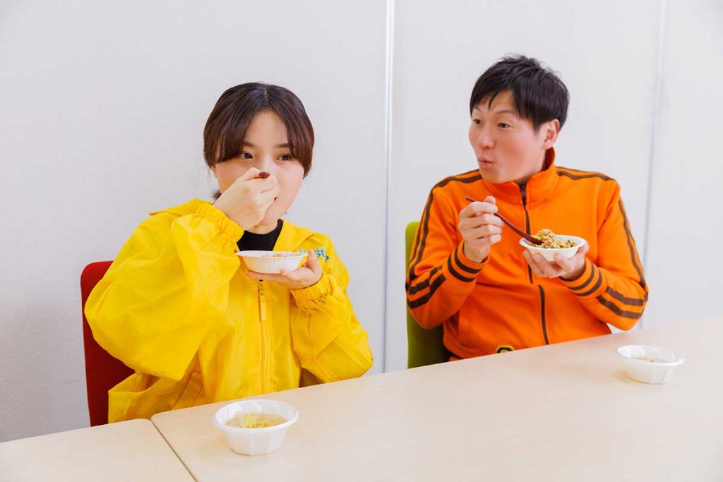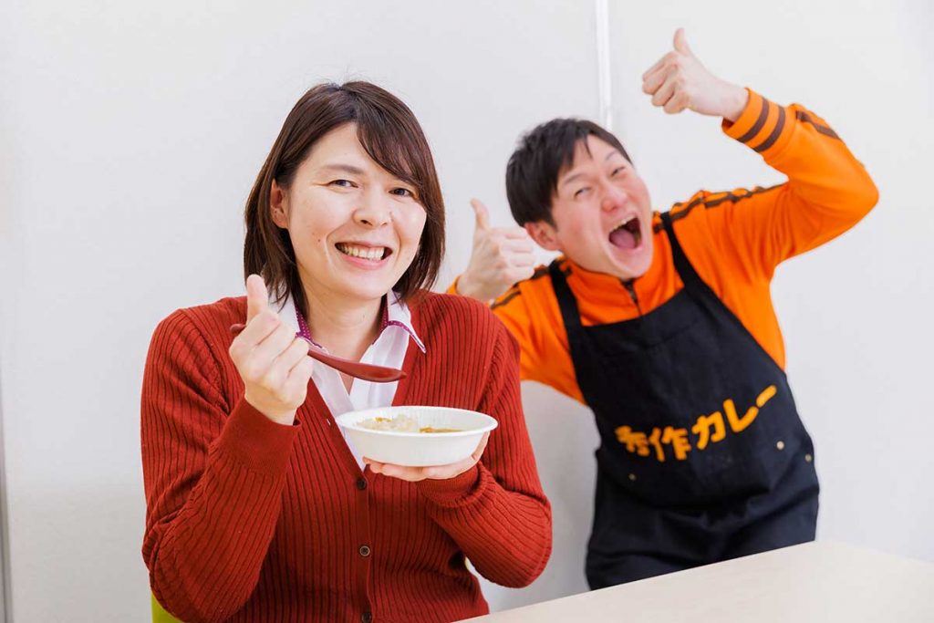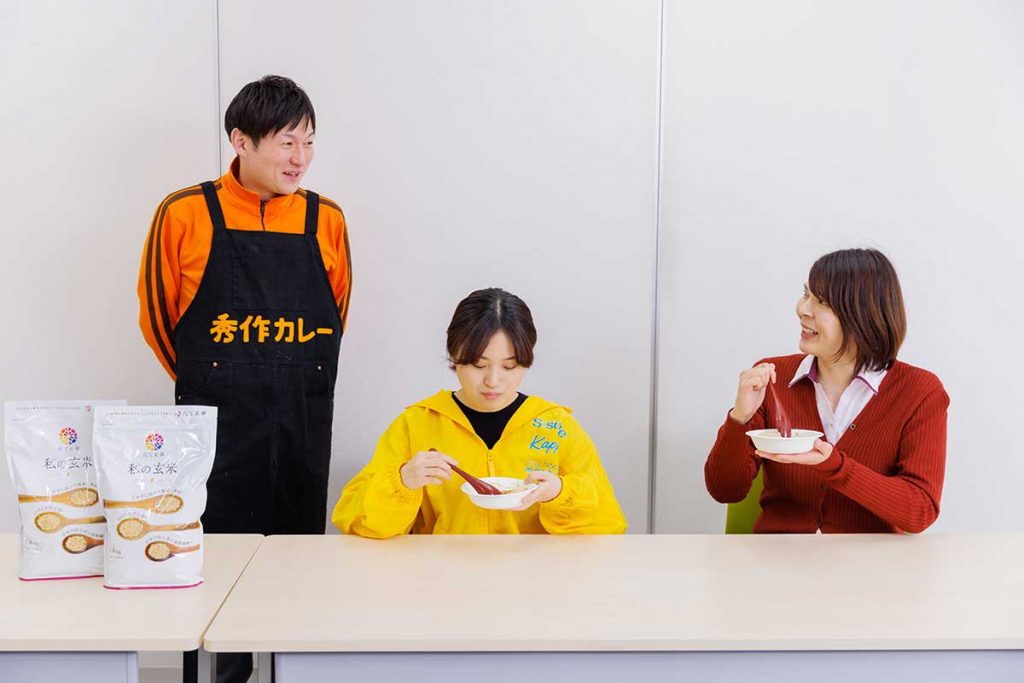 「うーん、カレーがおいしい!スパイス香る本格的な味わいで、『私の玄米』によく合いますね!」(八木橋さん)