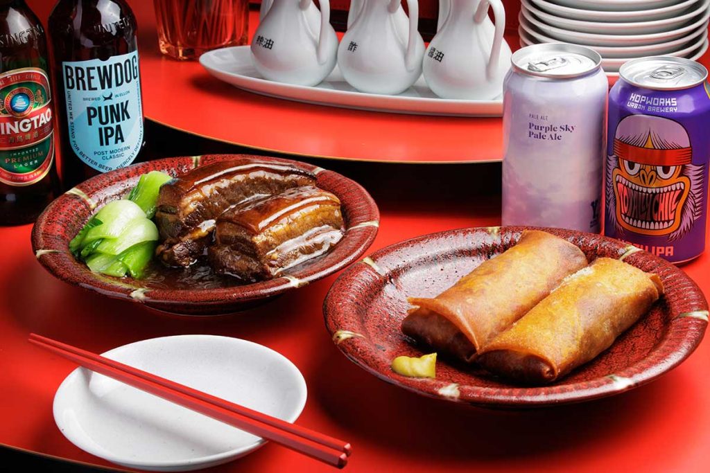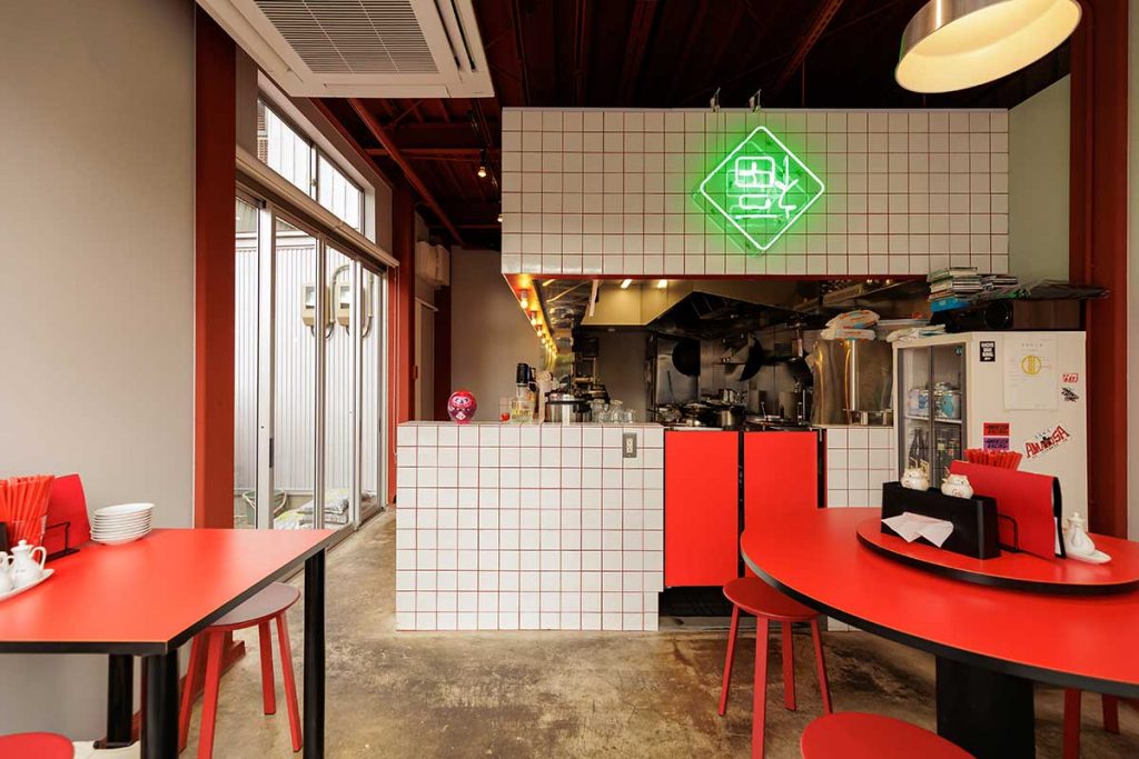 真っ赤な円卓テーブルと「福」のネオンが印象的で、まるでチャイナタウンに迷い込んだかのような雰囲気です。