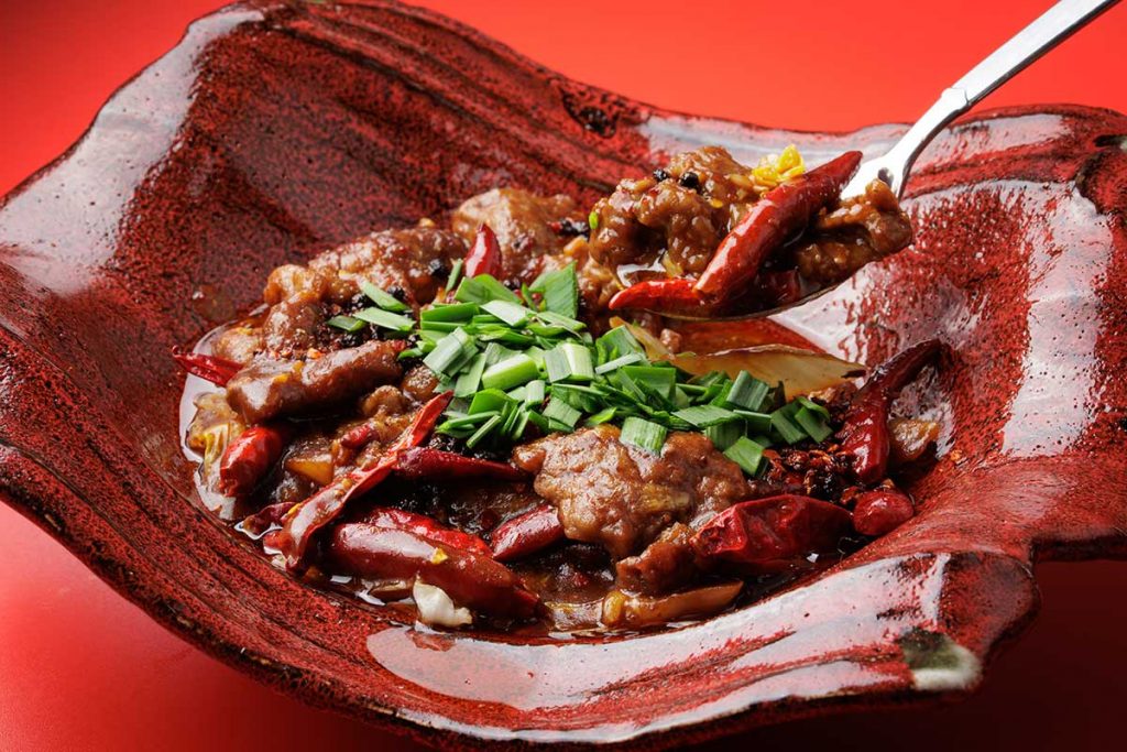 『中華飯店』では、上質な牛モモ肉と白菜を自家製の麻辣ダレやスパイスでさっと煮た後、スパイスを熱した油で香り高く仕上げています。