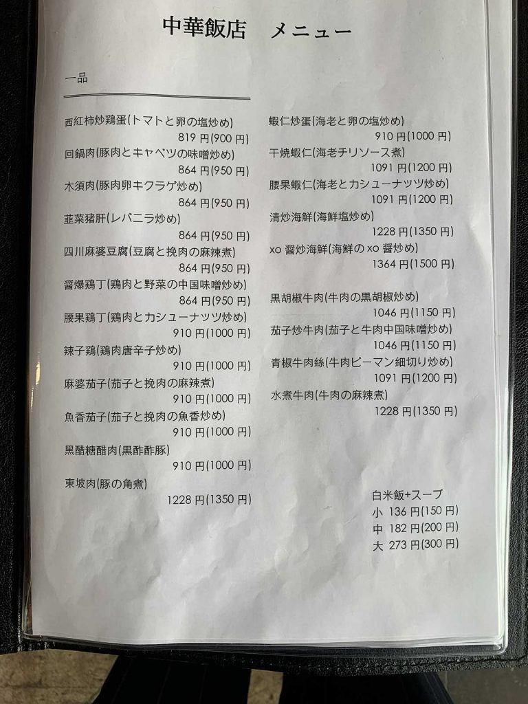 ランチや定食メニューはなく、単品料理は+150円~で(白飯+スープ)定食セットにできます。