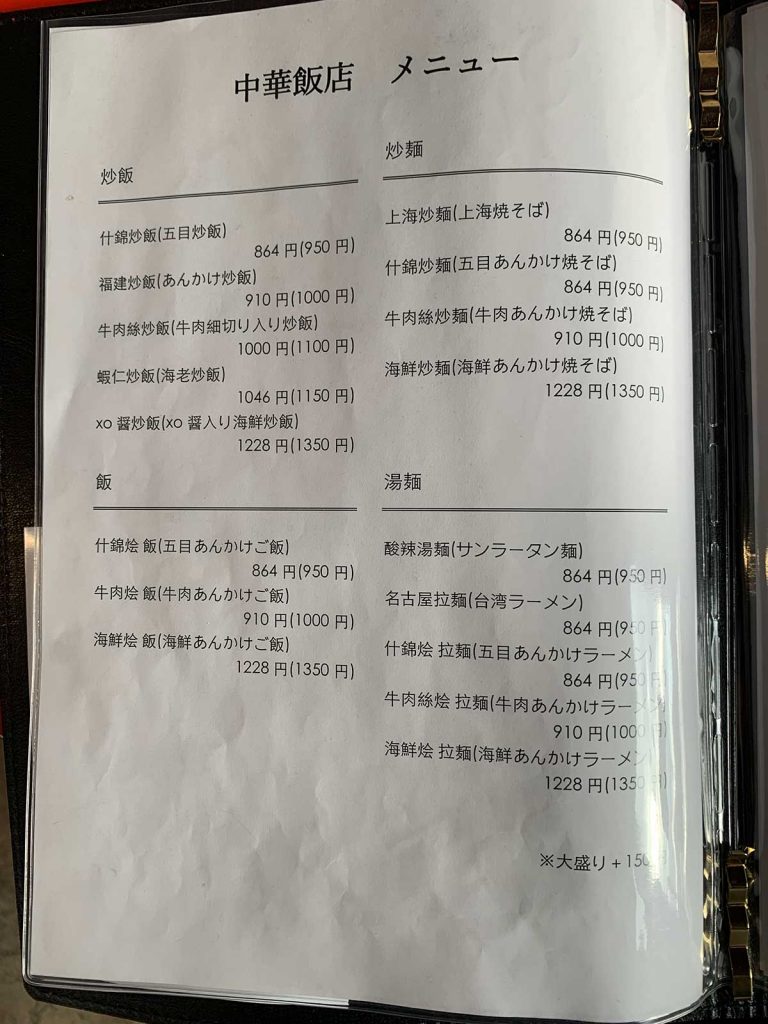 そのほか、チャーハンやあんかけご飯、焼きそばもあります。