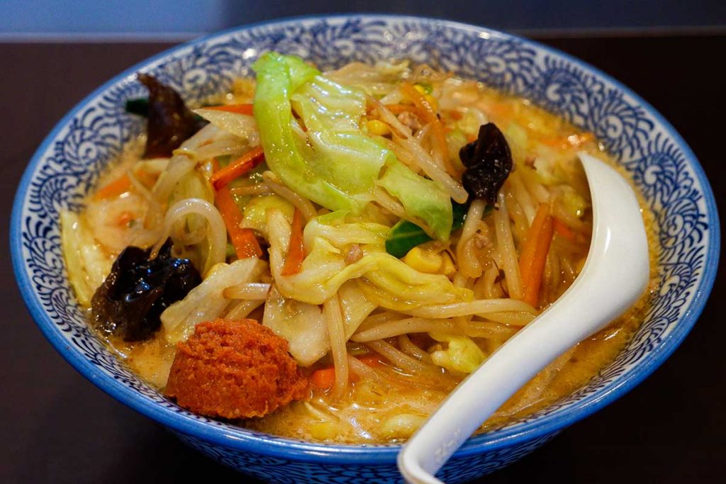 「辛味噌タンメン」(850円)。350gもの山盛り野菜を使用した、ボリューム満点の一杯