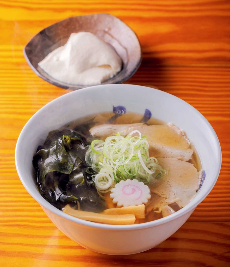 石巻の「伊達の旨塩」を使った「塩鶏そば」(700円)。親鶏のコリコリとした食感がたまらない!