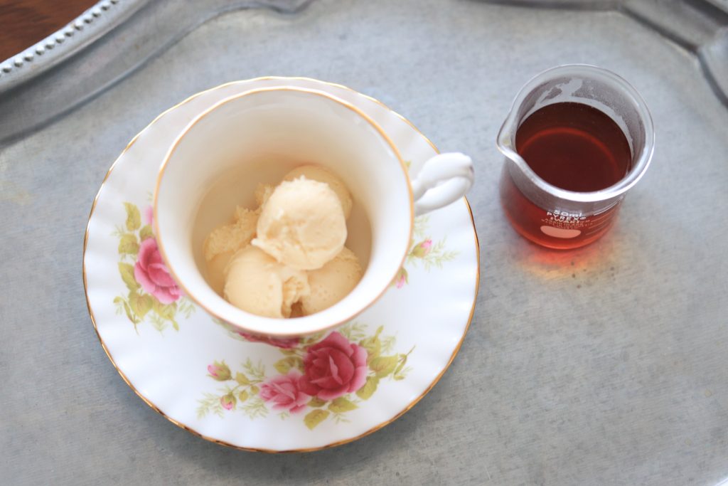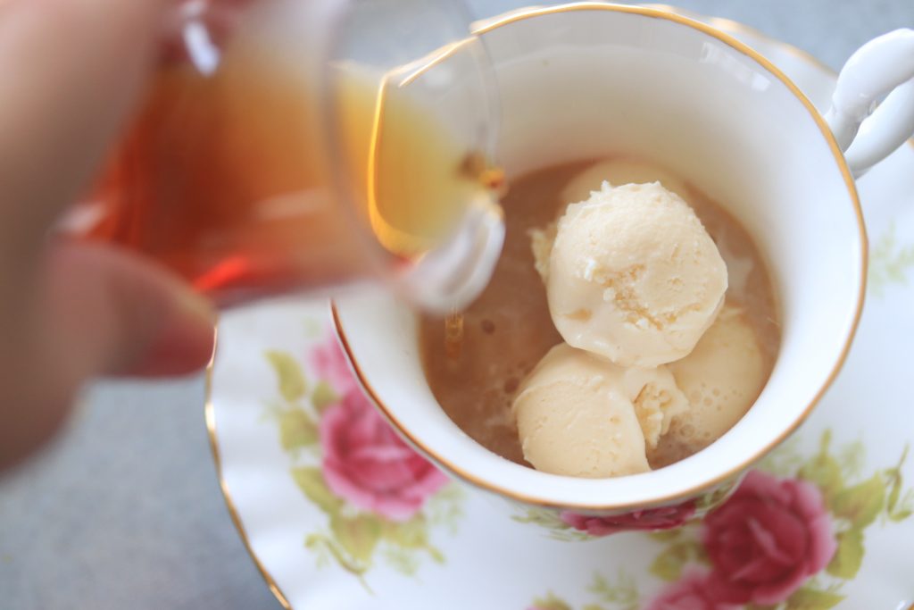 完成!紅茶の温度でアイスクリームが溶けだして、甘さと苦さがどちらも楽しめます!