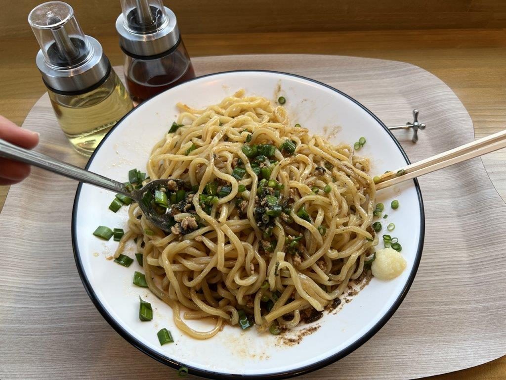 『uii meals&coffee』は、「おいしいご飯で満腹になれるカフェ」を目指して、カレーとまぜそばと唐揚げを看板に据えたカフェ食堂。花椒が効いた”台湾ミンチ”がたっぷりの「台湾まぜそば」は、醤油ベースのタレと麺、具材をしっかり混ぜるのがおいしくいただくポイント。カレー粉の代わりに魚粉を使い、さっぱりといただける一杯です。酢とラー油で味変しながら食べてれば、普通盛りで200g、大盛300gの重量級もあっという間に平らげてしまうはず。残ったタレに「追い飯」(80円)を加えて二度楽しむのもおすすめですよ!