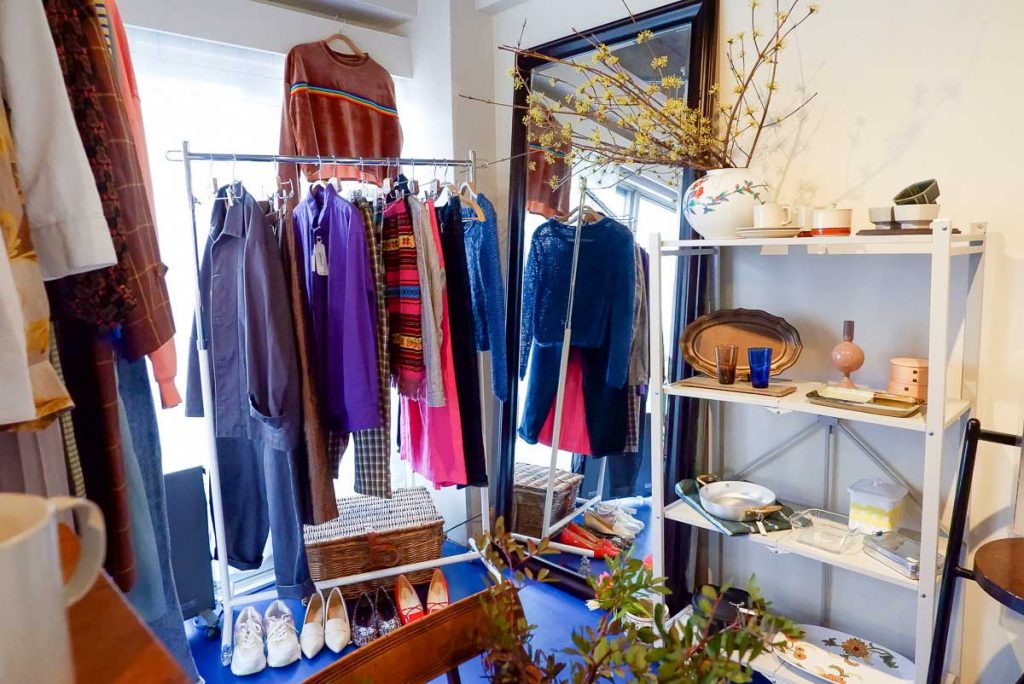 ショップスペースでは、洋服や靴、器がずらり。「プロのスタイリストがお仕事で使ったアイテムをみなさまへ」という想いで揃えており、ヴィンテージのアイテムもあります。さすがプロのスタイリストさん、本当にセレクトが可愛くて全部購入したいくらい!