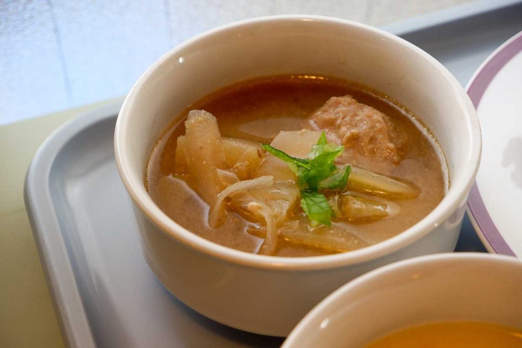 「白菜とごぼうの醤麹スープ」。肉団子とたっぷりのお野菜入りで食べ応えもばっちり