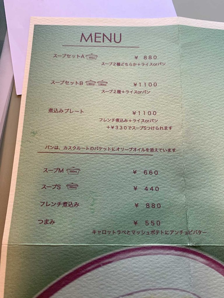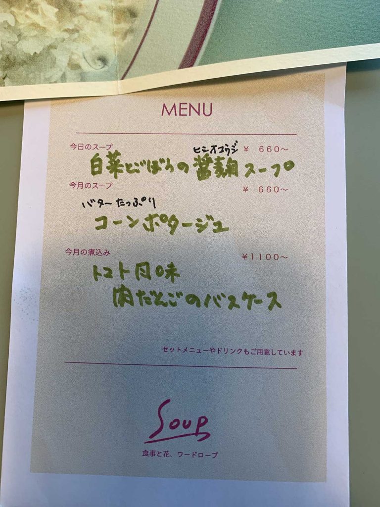食事メニューはスープセットが中心で、スープは2種類から選べます。