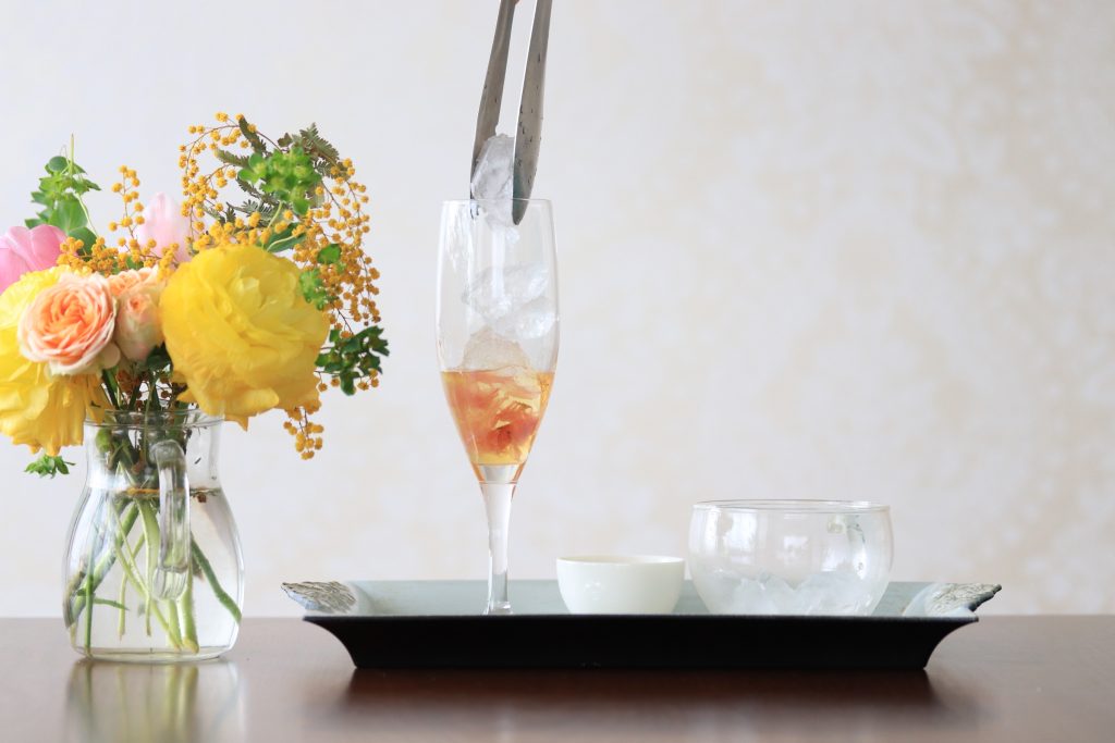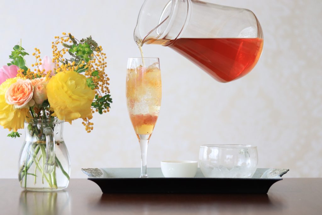 ④アイスティーを注ぐ。最後に注ぐと紅茶の味がしっかり感じられますよ