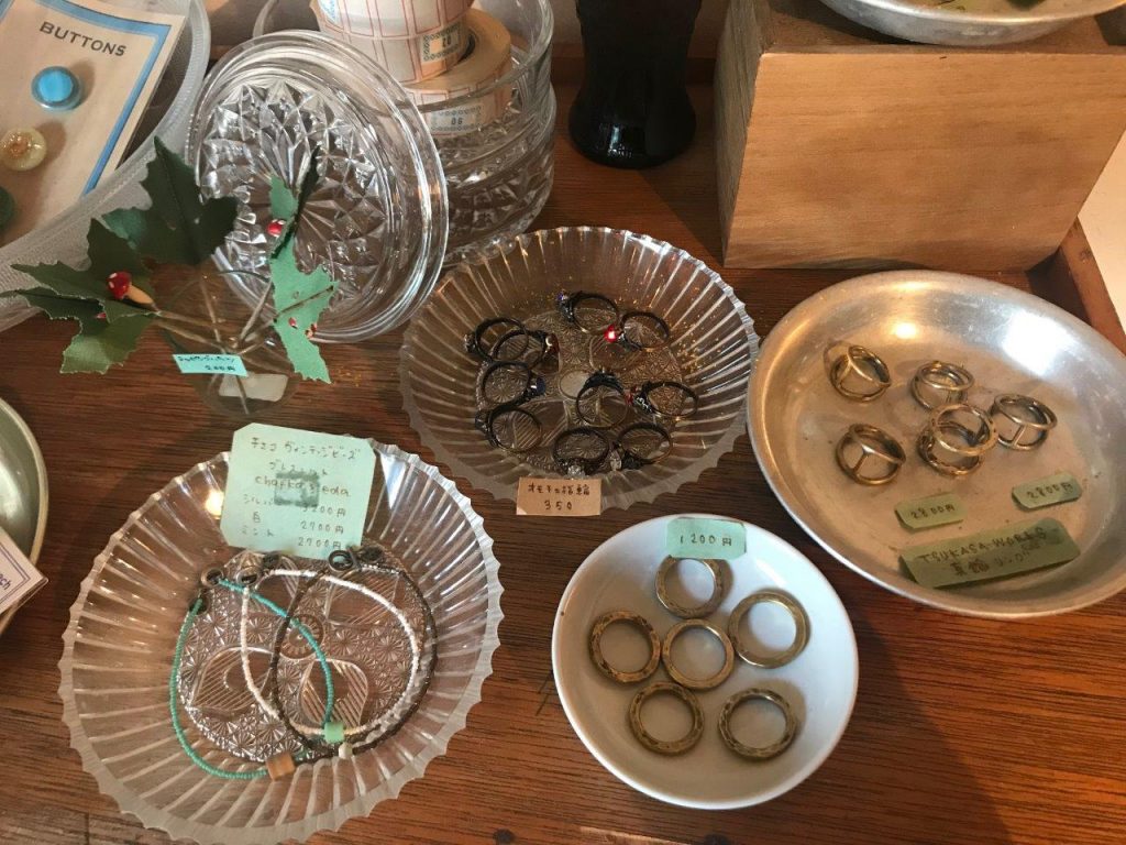 ヴィンテージのアクセサリー。一つひとつ微妙に形が違うので、お気に入りを探してみてください