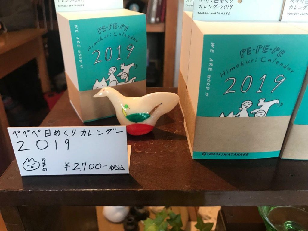 思わずふふっと笑いがこぼれてしまうようなほっこりイラストの『ぺぺぺ日めくりカレンダー2019』(2,700円)。毎日絵柄が違うのでめくるのが楽しい!