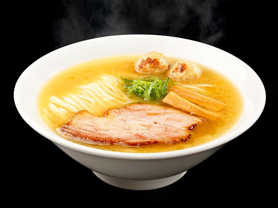 駿河湾に生息する世界一大きな蟹である「タカアシガニ」を使用したスープが絶品。カニの奥深い旨みと香りに店秘伝の塩タレを合わせた極上スープは、しなやかな食感のオリジナル細麺とも相性抜群です。