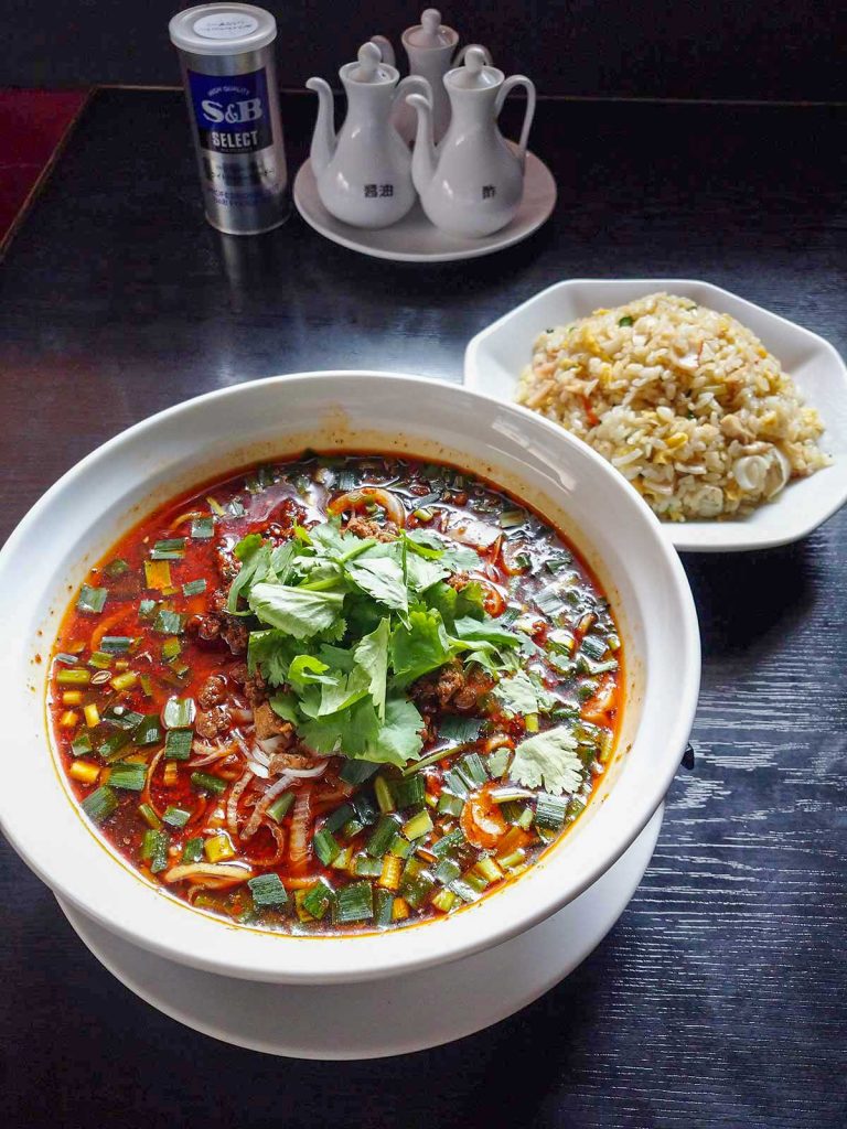 「紅担々麺」は親鶏がベースのあっさりスープに、しょうゆダレ、自家製の食べるラー油、香菜などがトッピングされ、辛さの中に香りや旨みを感じるバランスの良い味わいです。