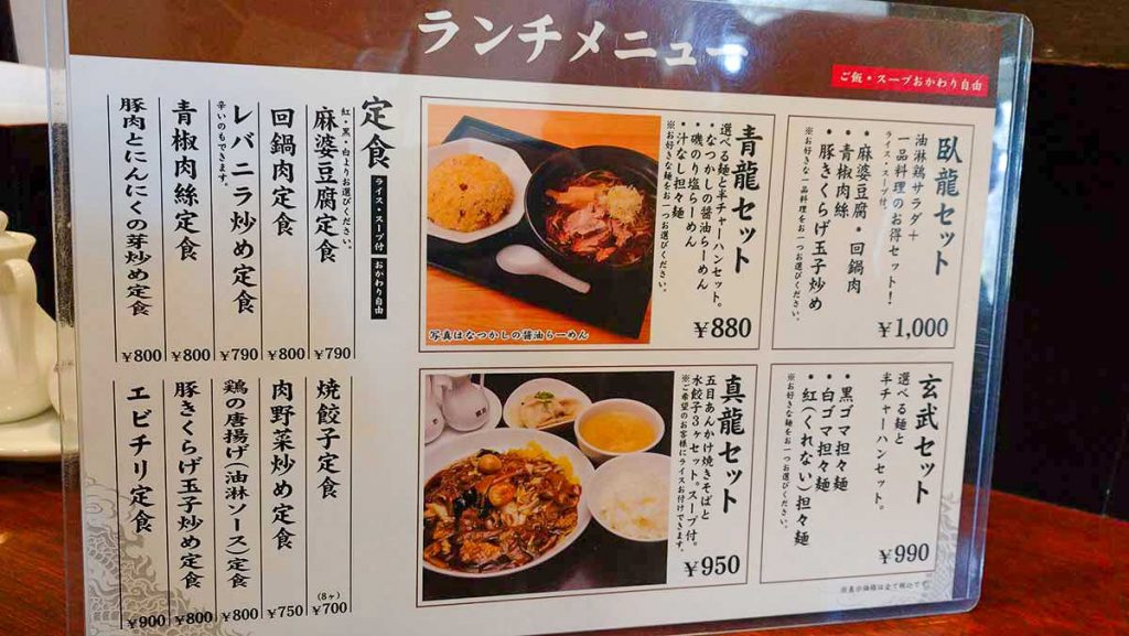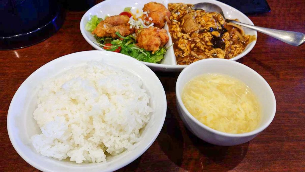 別日に訪れたときに食べた「臥龍セット」(1,000円)は、好みの一品料理を選び、さらに油淋鶏サラダが付いた、人気中華料理を2種類も食べられるお得なメニュー。