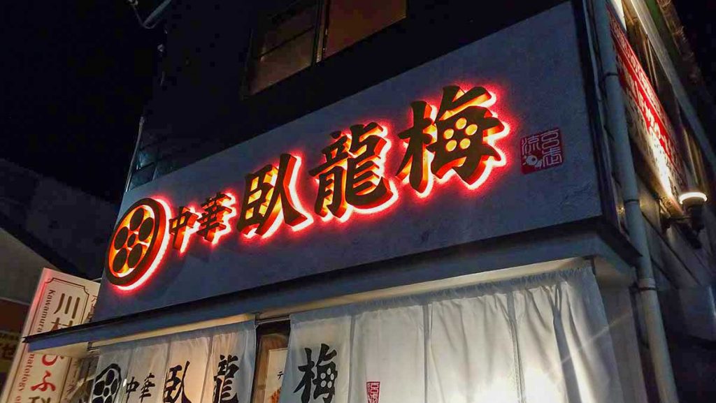 LEDが組み込まれて夜に光る看板は、店主自慢の看板だ!