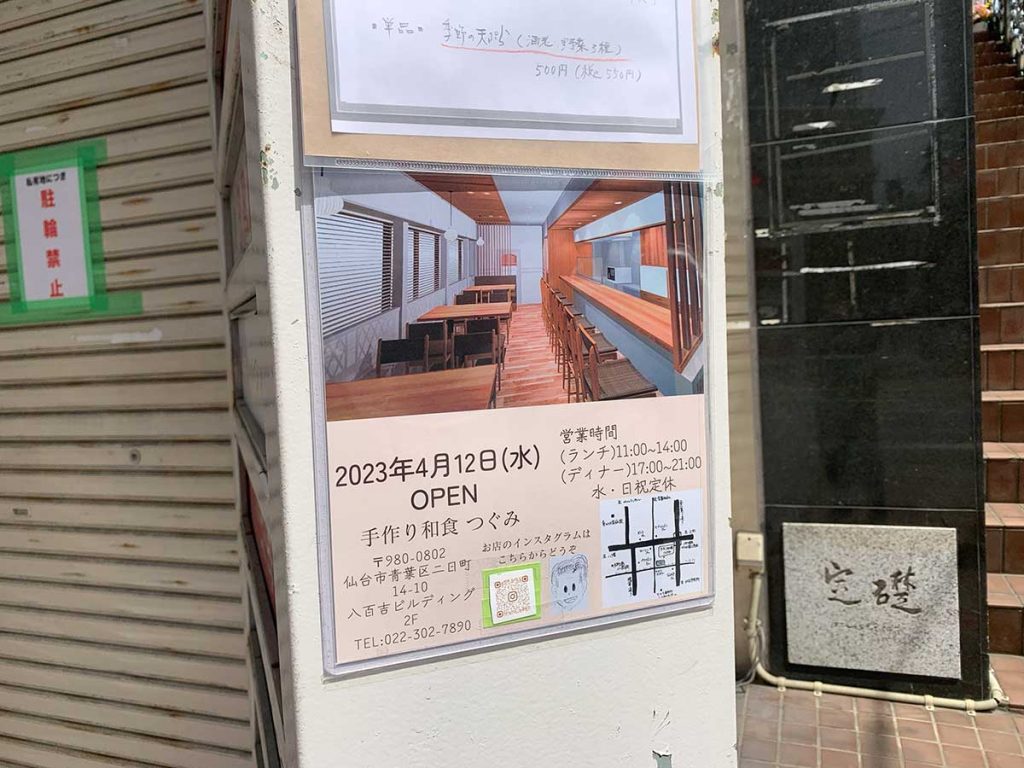 『手作り和食 つぐみ』とは、青葉区二日町にオープンした和食・日本料理店。