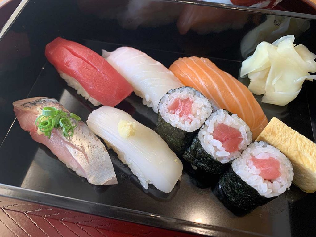 オープンキッチンのカウンターで店主が握るお寿司はネタが新鮮で、頬張るとふわっとほどける口溶けも心地よい。さすが職人の味!