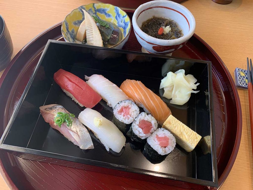お寿司は鮪から光物まで5貫。美しい佇まいです
