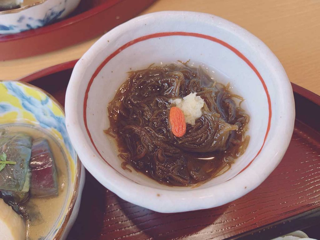 もう一つはもずく酢でした。クコの実が添えられ彩りもキレイ