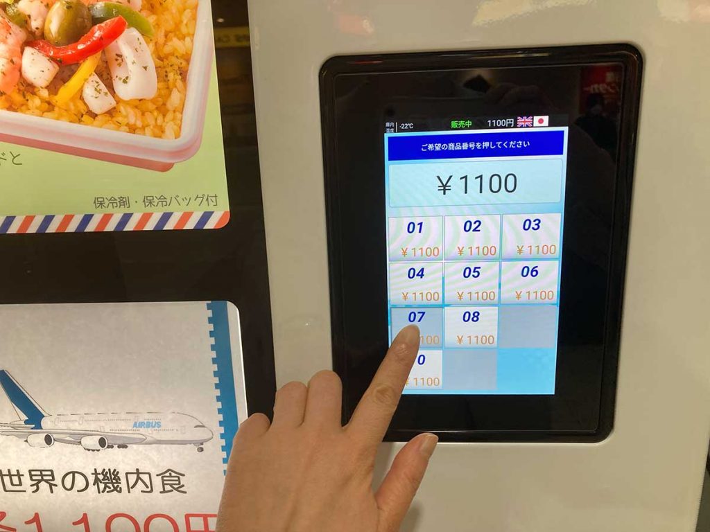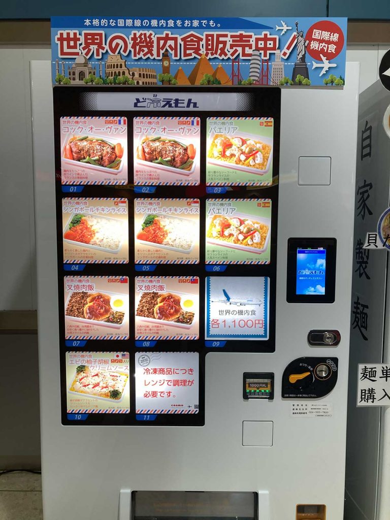 そんな機内食が自販機になって登場したと聞きつけ、仙台空港に行ってきました。その名も『世界の機内食シリーズ』。