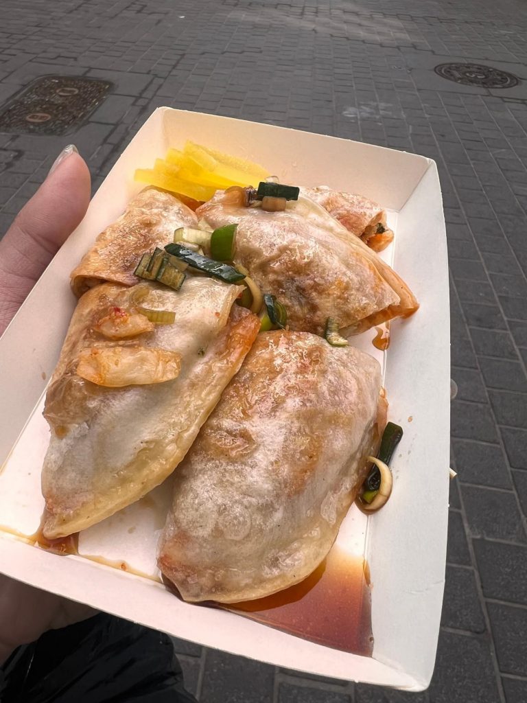 この日のランチ✨屋台で김치만두(キムチマンドゥ キムチ餃子)떡볶이(トッポッキ)を食べました😆