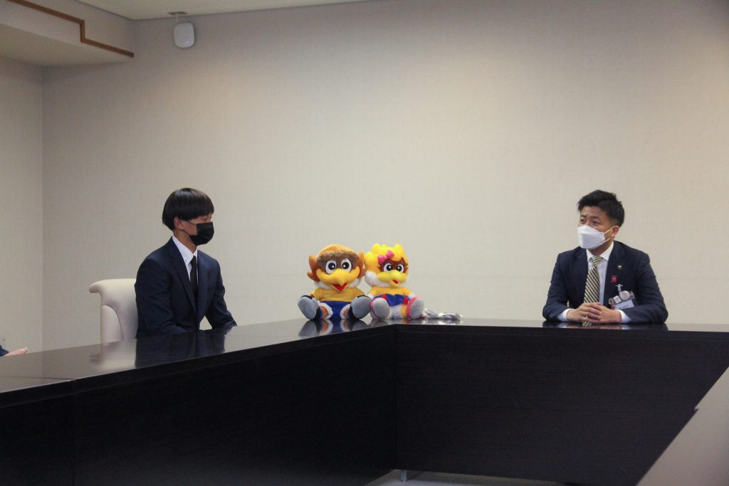 市長とは、通っていた小・中学校の話はもちろん、ご家族の目撃情報が多いお店の話まで、地元トークで大盛り上がり。