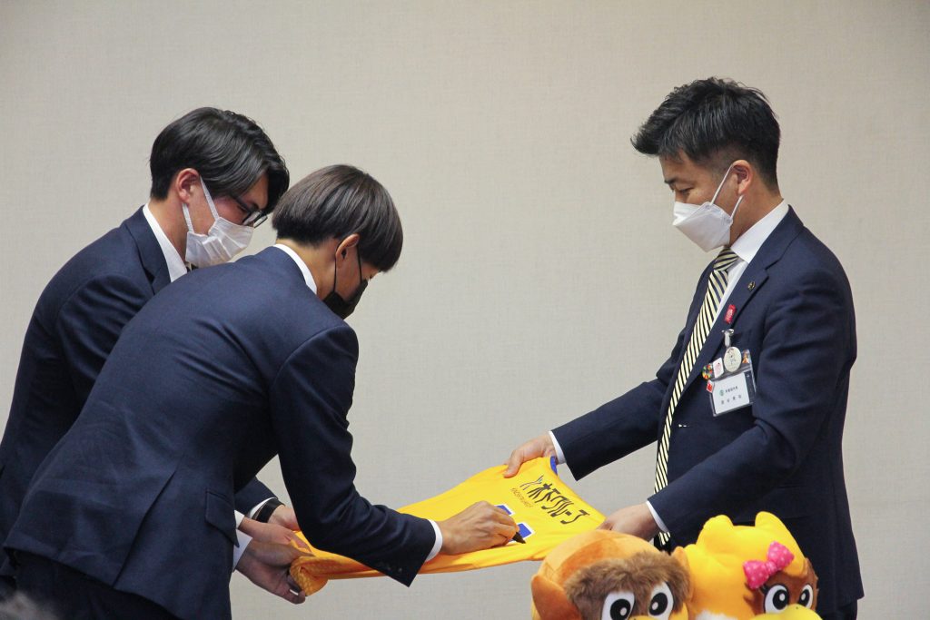「ゴールパフォーマンスでぜひ“多賀城!”と叫んでほしいね」(深谷市長)