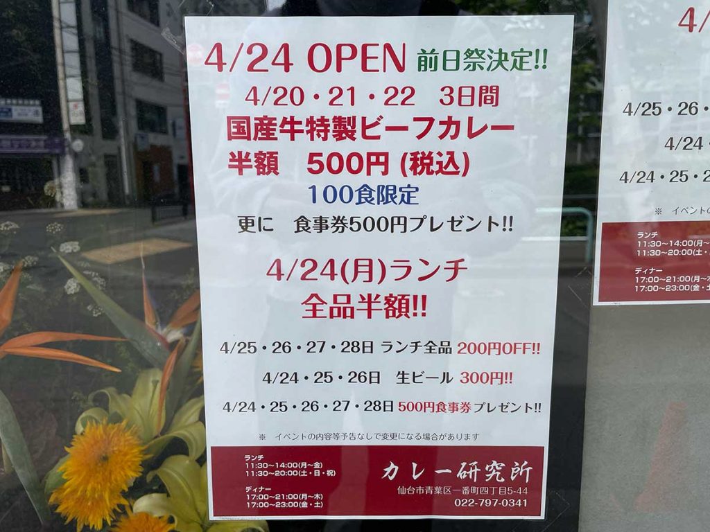 2023年4月24日(月)グランドオープンの、『カレー研究所』に行ってきました!