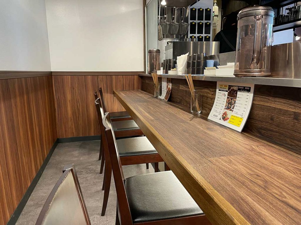 店内はカウンター席のみ。イスに着座か立ち食いスタイルの2パターン