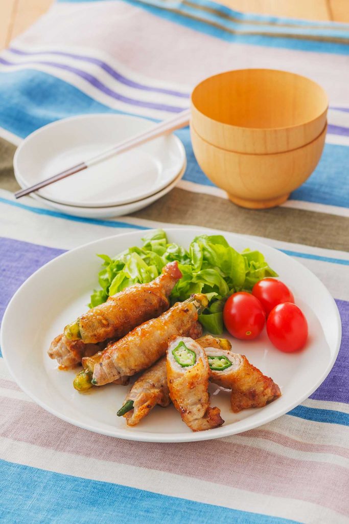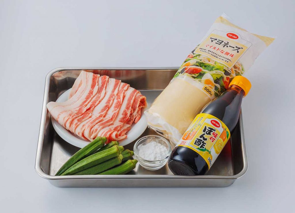 オクラ×豚肉の栄養満点食材に、マヨネーズ×ポン酢の激ウマ合わせ調味料を絡めて焼き上げました。ポン酢の程よい酸味で、ご飯がすすむ一皿です。