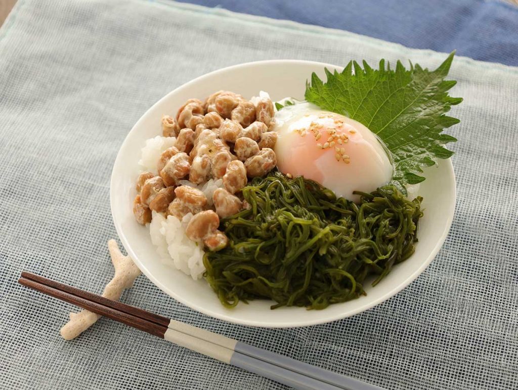 【追加でもう1品いかが?】「黄金のねばねば丼」 小さめの丼にご飯をよそったら、納豆、「めぐみ野」志津川湾産湯通しめかぶ、温泉卵をのせるだけ。お手軽ねばねば丼の完成です!