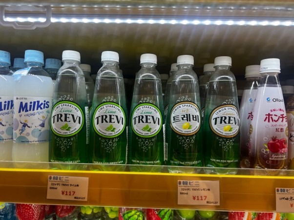 2007年にロッテから発売されたトレビは、韓国内の炭酸水飲料の中で売上第1位を誇るほどの大人気炭酸水♪『韓ビニ』にはレモン味とライム味の2種類がありました♪