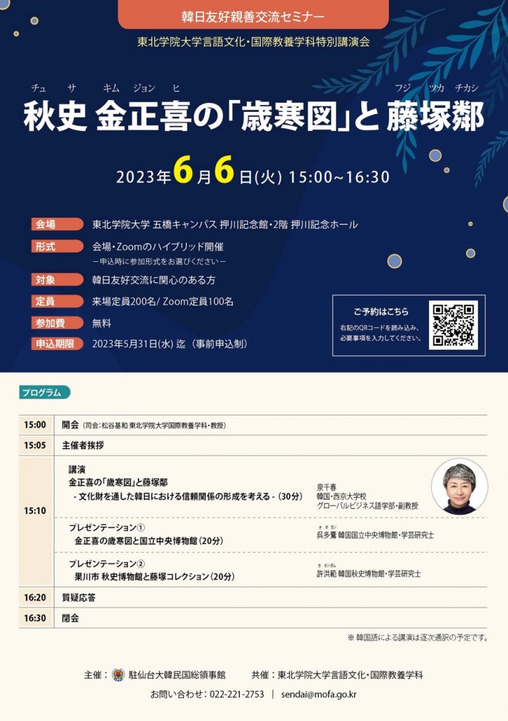 韓日友好親善交流セミナー「秋史金正喜の『歳寒図』藤塚鄰」開催のご案内です。