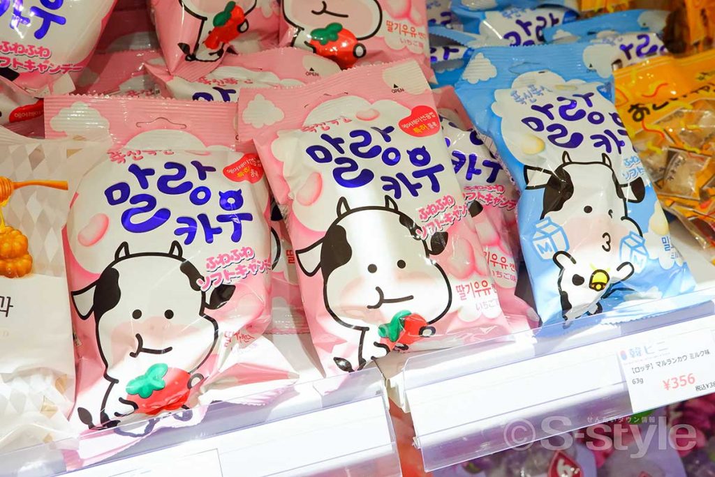 こちらはフワフワ?モチモチ?な不思議な食感で甘いミルクの味が人気のソフトキャンディ、「말랑카우 マルランカウ」🥛