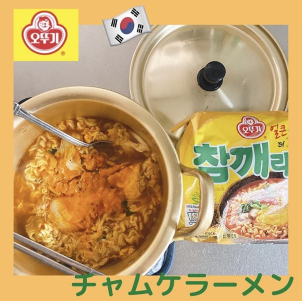 チャムケとは韓国語で「ゴマ」という意味。ゴマが練り込まれた香ばしい風味のラーメンです。ピリッとした辛みとゴマ油の風味がクセになる味です^^*