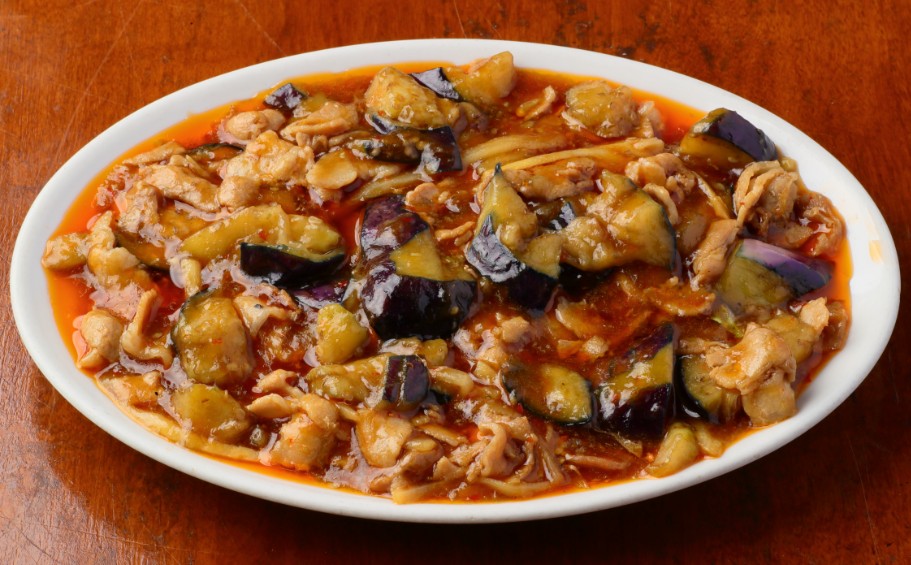 定食人気No.1のピリ辛メニュー「豚肉ナス辛し煮定食」(800円)。たっぷりのナス&豚肉を豆板醤で炒め、隠し味にペースト状の黄桃をイン。キレのある辛さと旨みにご飯が進むひと品※木ご飯、味噌汁、納豆、冷奴、漬物付